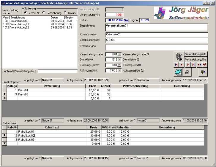 | 1. | Anlegen von Veranstaltungen mit Preiskategorien und Rabattstufen |