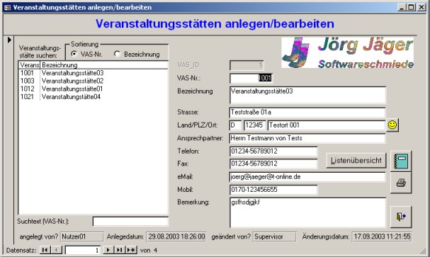 Übersichtliche Eingabe der Veranstaltungsstätten und